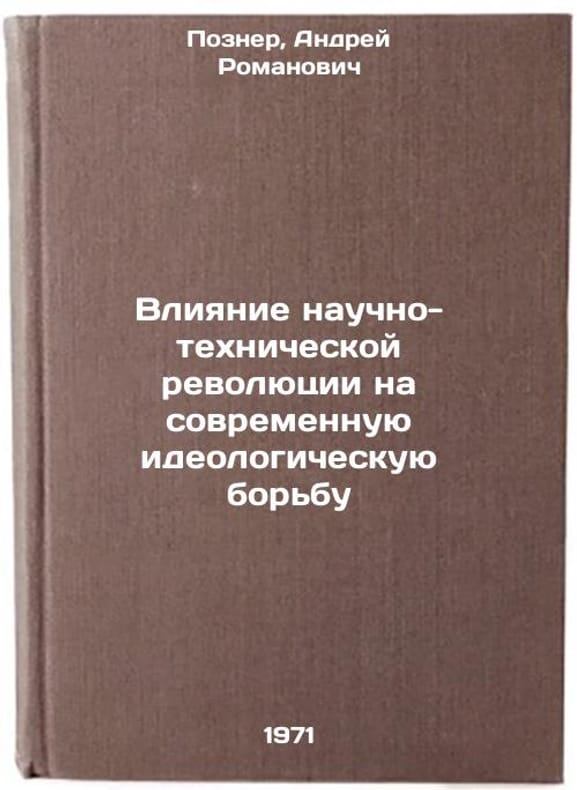 In Russian. Pozner, Andrey Romanovich. The Impact of the Scientific and Technological Revolution on Modern Ideological Struggle. Moscow: 1971. Vliyanie nauchno-tekhnicheskoy revolyutsii na sovremennuyu ideologicheskuyu bor'bu. In Russian /The Impact of the Scientific and Technological Revolution on Modern Ideological Struggle . All images are for identification of editions only. Several books of the same edition may be available. Please feel free to request photos of available books. SKU7329492