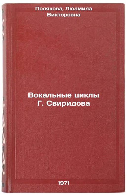 In Russian. Polyakova, Lyudmila Viktorovna. G. Sviridov's Vocal Cycles. Moscow: Soviet Composer, 1971. All images are for identification of editions only. Several books of the same edition may be available. Please feel free to request photos of available books. SKU7329974