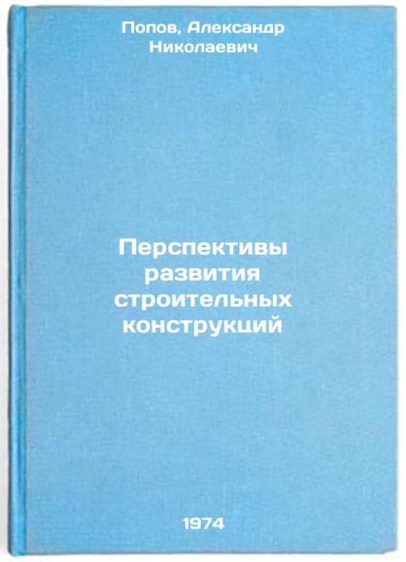 In Russian. Popov, Alexander Nikolaevich. Prospects for the Development of Construction Structures. Perspektivy razvitiya stroitel'nykh konstruktsiy. In Russian /Prospects for the development of building structures. All images are for identification of editions only. Several books of the same edition may be available. Please feel free to request photos of available books. SKU7330913