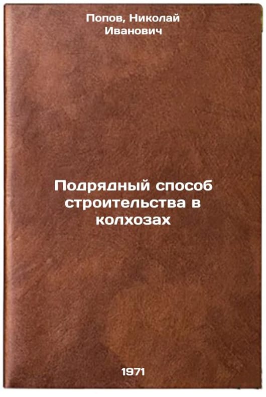 In Russian. Popov, Nikolai Ivanovich. Contracting method of construction in collective farms. Vologda: North-West book edition, 1971. Podryadnyy sposob stroitel'stva v kolkhozakh. In Russian /Contract construction in collective farms . All images are for identification of editions only. Several books of the same edition may be available. Please feel free to request photos of available books. SKU7333537