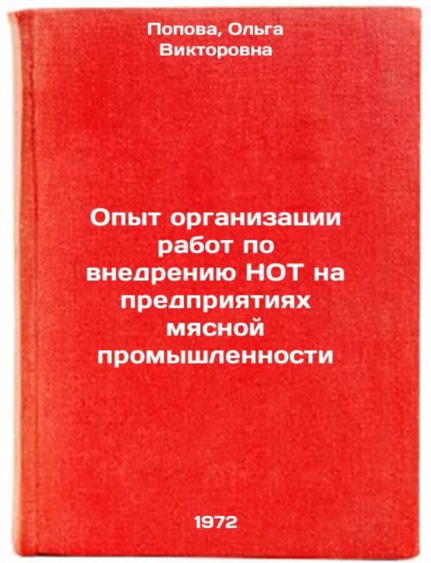 In Russian. Popova, Olga Viktorovna. Experience in organising work on the introduction of NOT at meat industry enterprises. Moscow: Food Industry, 1972. Opyt organizatsii rabot po vnedreniyu NOT na predpriyatiyakh myasnoy promyshlennosti. In Russian/Experience in organising the implementation of NOT in meat-processing enterprises. All images are for identification of editions only. Several books of the same edition may be available. Please feel free to request photos of available books. SKU7333715