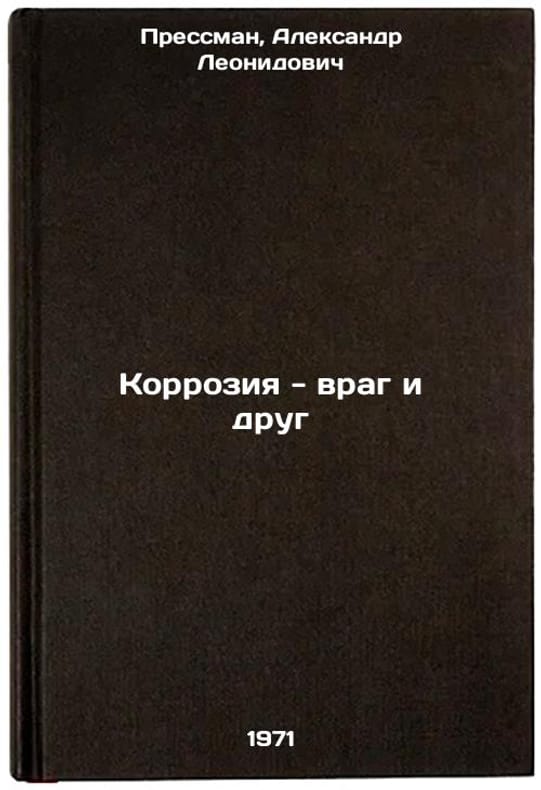 In Russian. Pressman, Alexander Leonidovich. Corrosion is Enemy and Friend. Moscow: Znanie, 1971. All images are for identification of editions only. Several books of the same edition may be available. Please feel free to request photos of available books. SKU7333861