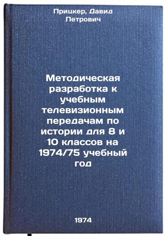 In Russian. Pritsker, David Petrovich. Methodological development for educational television programs on history for the 8th and 10th grades for the 1974 / 75 school year. Leningrad: 1974. Metodicheskaya razrabotka k uchebnym televizionnym peredacham po istorii dlya 8 i 10 klassov na 1974-75 uchebnyy god. In Russian /Methodological development for educational history television programs for grades 8 and 10 for the 1974-75 school year. All images are for identification of editions only. Several books of the same edition may be available. Please feel free to request photos of available books. SKU7335603