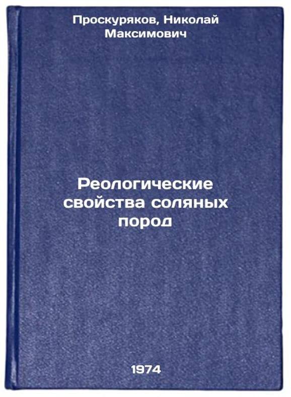 In Russian. Proskuryakov, Nikolai Maksimovich. Rheological properties of salt rocks. Moscow: NIITEChem, 1974. Reologicheskie svoystva solyanykh porod. In Russian /Rheological properties of salt rocks. All images are for identification of editions only. Several books of the same edition may be available. Please feel free to request photos of available books. SKU7336854