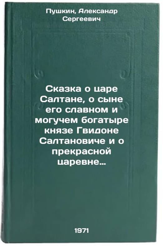 In Russian. Pushkin, Alexander Sergeyevich. The Tale of Tsar Saltan, of his glorious and mighty son, Prince Guidon Saltanovich, and of the beautiful Swan Queen. Moscow: Det. lit., 1975. Skazka o tsare Saltane, o syne ego slavnom i moguchem bogatyre knyaze Gvidone Saltanoviche i o prekrasnoy tsarevne Lebedi. In Russian /The Tale of King Saltan, of his glorious and mighty son, Prince Guidon Saltanovich, and of the beautiful Queen of the Swan. All images are for identification of editions only. Several books of the same edition may be available. Please feel free to request photos of available books. SKU7016964