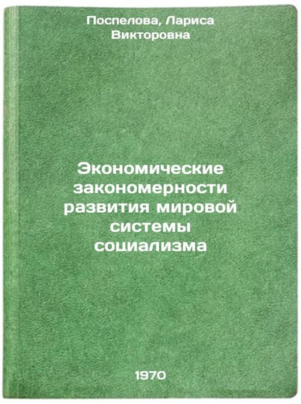 In Russian. Pospelova, Larisa Viktorovna. Economic patterns of the development of the world system of socialism. Penza: 1970. Ekonomicheskie zakonomernosti razvitiya mirovoy sistemy sotsializma. In Russian /The Economic Patterns of the World System of Socialism . All images are for identification of editions only. Several books of the same edition may be available. Please feel free to request photos of available books. SKU7337811