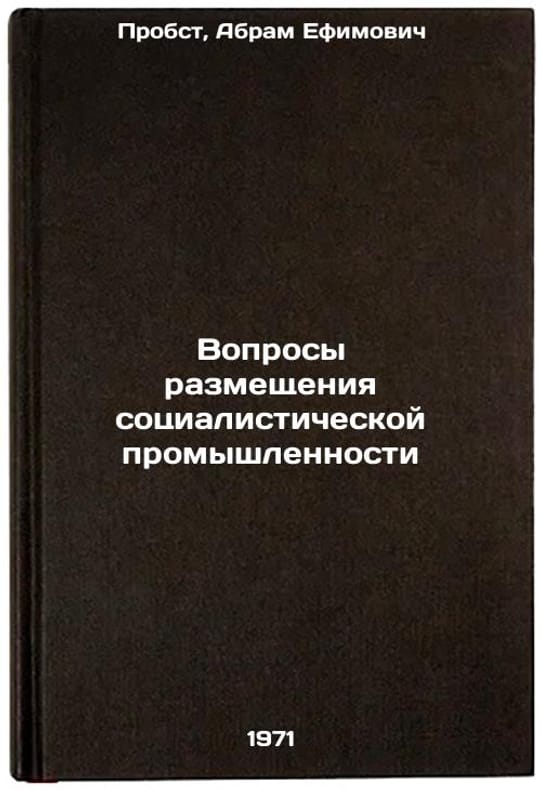 In Russian. Probst, Abram Efimovich. Issues of the Placement of Socialist Industry. Moscow: Science, 1971. Voprosy razmeshcheniya sotsialisticheskoy promyshlennosti. In Russian /The Placement of Socialist Industries . All images are for identification of editions only. Several books of the same edition may be available. Please feel free to request photos of available books. SKU7341440