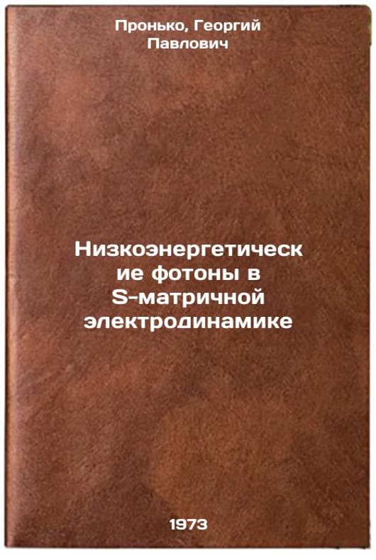 In Russian. Pronko, Georgy Pavlovich. Low-energy photons in S-matrix electrodynamics. Serpukhov: 1973. Nizkoenergeticheskie fotony v S-matrichnoy elektrodinamike. In Russian/Low-energy photons in S-matrix electrodynamics. All images are for identification of editions only. Several books of the same edition may be available. Please feel free to request photos of available books. SKU7345900