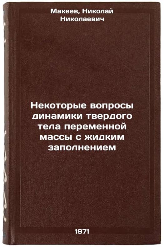 In Russian. Makeev, Nikolai Nikolaevich. Some questions of the dynamics of a solid body of variable mass with liquid filling. Moscow: 1971. Nekotorye voprosy dinamiki tverdogo tela peremennoy massy s zhidkim zapolneniem. In Russian /Some questions about the dynamics of a liquid-filled solid body of variable mass . All images are for identification of editions only. Several books of the same edition may be available. Please feel free to request photos of available books. SKU7347624