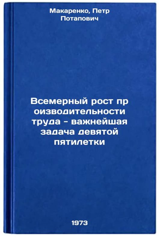 In Russian. Makarenko, Petr Potapovich. Comprehensive productivity growth is the most important task of the Ninth Five-Year Plan. Chisinau: 1973. All images are for identification of editions only. Several books of the same edition may be available. Please feel free to request photos of available books.SKU7349131