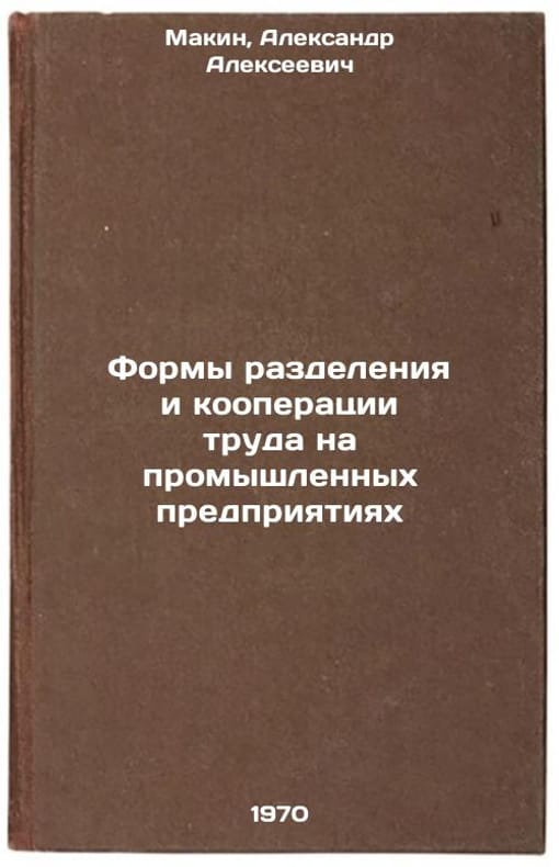 In Russian. Makin, Alexander Alekseevich. Forms of division and cooperation of labor in industrial enterprises. Moscow: 1970. Formy razdeleniya i kooperatsii truda na promyshlennykh predpriyatiyakh. In Russian /Forms of division and cooperation of labor in industrial enterprises . All images are for identification of editions only. Several books of the same edition may be available. Please feel free to request photos of available books. SKU7349456