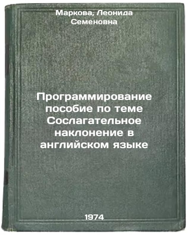 In Russian. Markova, Leonida Semenovna. Programming Manual on the topic Conditional Inclination in English. Novosibirsk: 1974. Programmirovanie posobie po teme Soslagatel'noe naklonenie v angliyskom yazyke. In Russian /Programming Manual on Conditional Inclination in English. All images are for identification of editions only. Several books of the same edition may be available. Please feel free to request photos of available books. SKU7349826