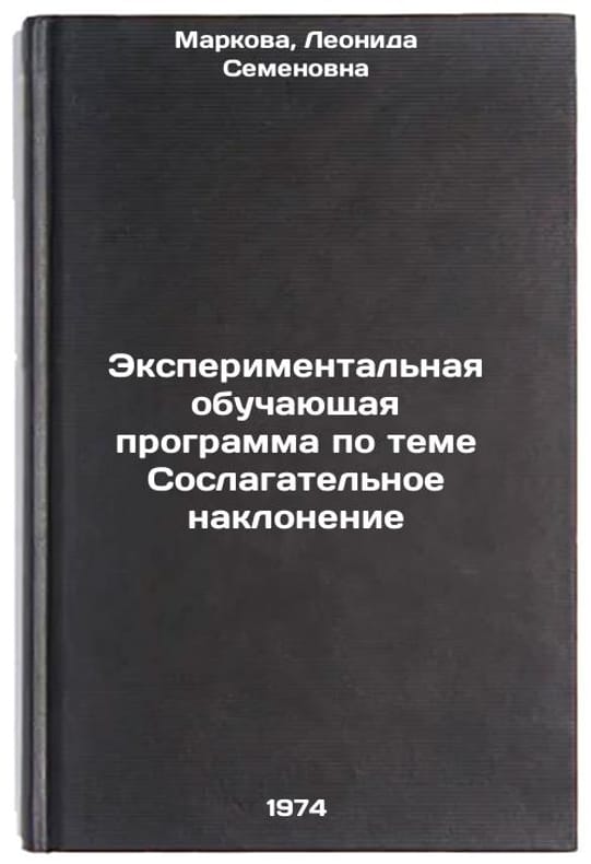 In Russian. Markova, Leonida Semenovna. Experimental training program on the topic Conditional inclination. Novosibirsk: 1974. Eksperimental'naya obuchayushchaya programma po teme Soslagatel'noe naklonenie. In Russian /Pilot Learning Program on Conditional Inclination. All images are for identification of editions only. Several books of the same edition may be available. Please feel free to request photos of available books. SKU7349827