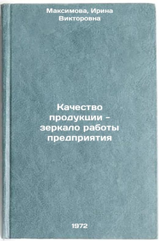 In Russian. Maksimova, Irina Viktorovna. Product quality is a mirror of the enterprises work. Sverdlovsk: Middle-Ural book, 1972. Kachestvo produktsii - zerkalo raboty predpriyatiya. In Russian/Product quality is the mirror of the enterprise. All images are for identification of editions only. Several books of the same edition may be available. Please feel free to request photos of available books. SKU7350874