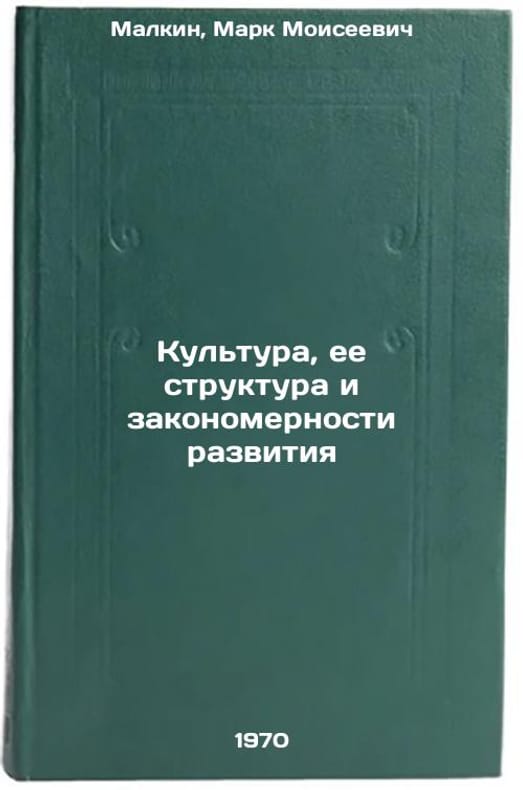 In Russian. Malkin, Mark Moiseevich. Culture, its structure and patterns of development. Leningrad: 1970. Kul'tura, ee struktura i zakonomernosti razvitiya. In Russian /Culture, its structure and patterns of development . All images are for identification of editions only. Several books of the same edition may be available. Please feel free to request photos of available books. SKU7351632