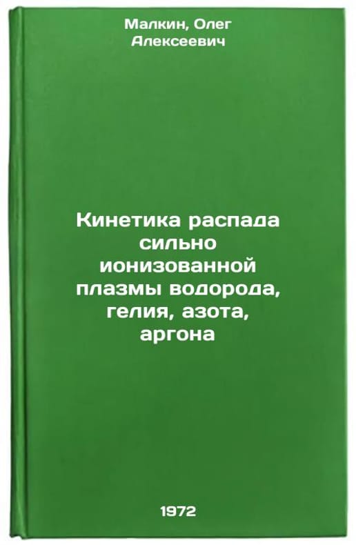 In Russian. Malkin, Oleg Alekseevich. Kinetics of decay of highly ionized plasma of hydrogen, helium, nitrogen, argon. Moscow: 1972. Kinetika raspada silno ionizovannoy plazmy vodoroda, geliya, azota, argona. In Russian/Degradation kinetics of highly ionized plasma of hydrogen, helium, nitrogen, argon. All images are for identification of editions only. Several books of the same edition may be available. Please feel free to request photos of available books. SKU7351635