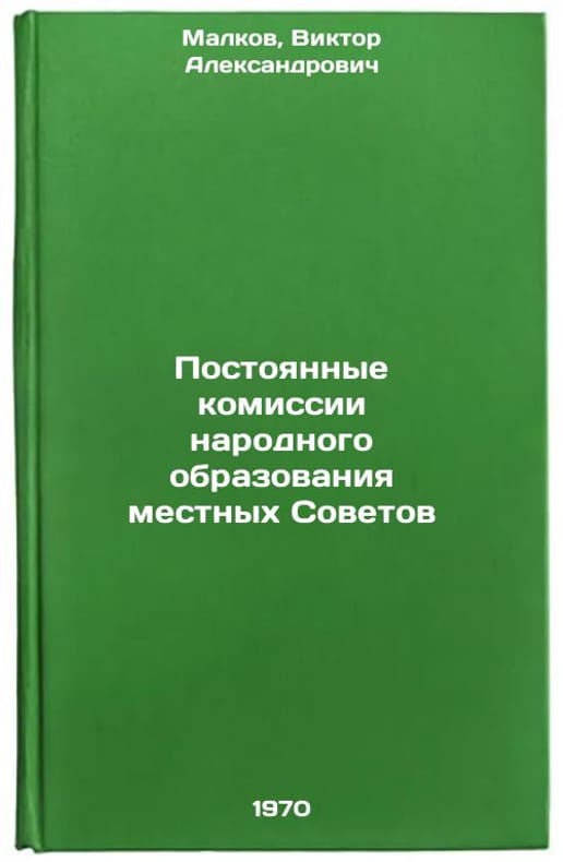 In Russian. Malkov, Viktor Alexandrovich. Permanent Commissions of People's Education of Local Councils. Moscow: Legal Litas, 1970. Postoyannye komissii narodnogo obrazovaniya mestnykh Sovetov. In Russian /Local Council Standing Committees for Popular Education . All images are for identification of editions only. Several books of the same edition may be available. Please feel free to request photos of available books. SKU7351672