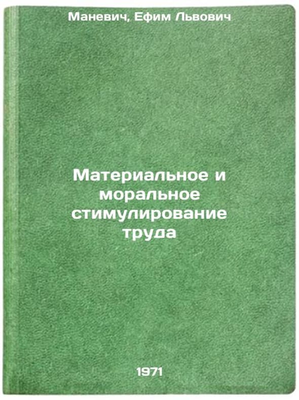 In Russian. Manevich, Efim Lvovich. Material and moral stimulation of work. Moscow: Profizdat, 1971. Material'noe i moral'noe stimulirovanie truda. In Russian /Material and moral stimulation of work . All images are for identification of editions only. Several books of the same edition may be available. Please feel free to request photos of available books. SKU7352242