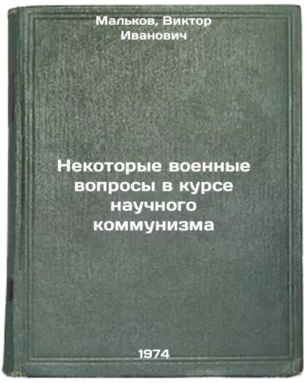 In Russian. Malkov, Viktor Ivanovich. Some military issues in the course of scientific communism. Leningrad: 1974. Nekotorye voennye voprosy v kurse nauchnogo kommunizma. In Russian /Some military issues in the course of scientific communism. All images are for identification of editions only. Several books of the same edition may be available. Please feel free to request photos of available books. SKU7352577