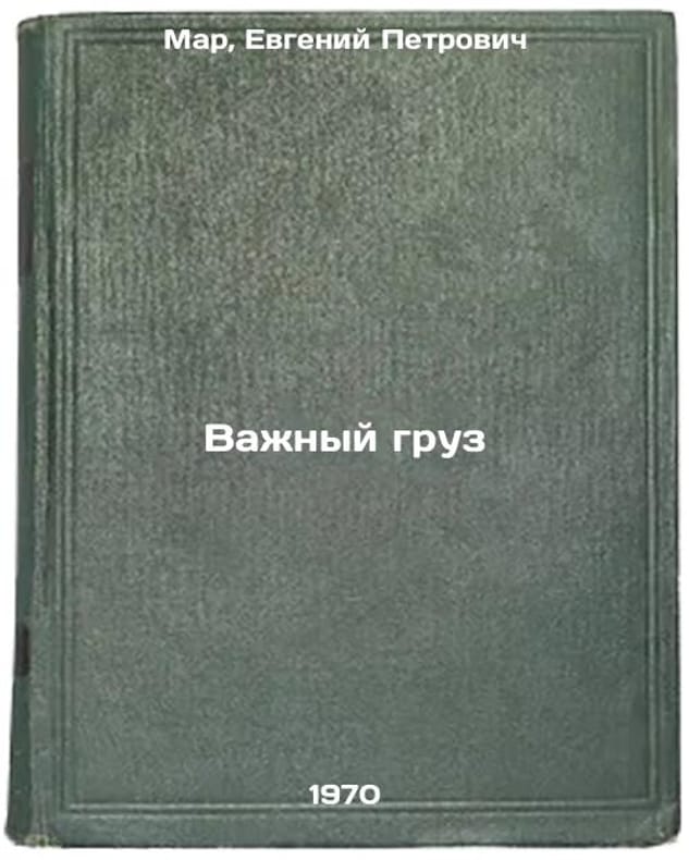 In Russian. Mar, Evgeniy Petrovich. Important Cargo. Moscow: Det. lit., 1970. All images are for identification of editions only. Several books of the same edition may be available. Please feel free to request photos of available books. SKU7353752