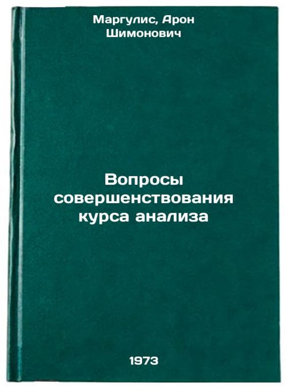 In Russian. Margulis, Aron zh†imonovich. Issues of improving the course of analysis. Moscow: 1973. Voprosy sovershenstvovaniya kursa analiza. In Russian/Issues for improving the course of analysis. All images are for identification of editions only. Several books of the same edition may be available. Please feel free to request photos of available books. SKU7353882