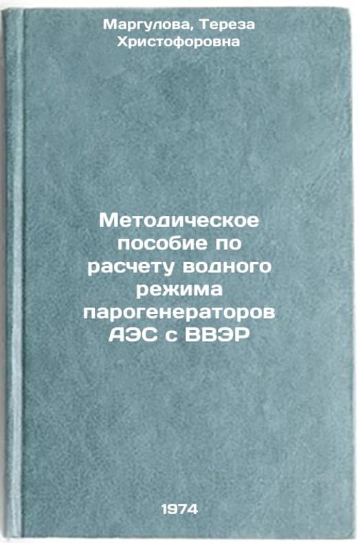 In Russian. Margulova, Teresa Khristoforovna. Methodological Manual for Calculating Water Mode of VVER Steam Generators at Nuclear Power Plants. Moscow: 1974. Metodicheskoe posobie po raschetu vodnogo rezhima parogeneratorov AES s VVER. In Russian /Methodological Manual for Calculating Water Mode of VVER Steam Generators. All images are for identification of editions only. Several books of the same edition may be available. Please feel free to request photos of available books. SKU7353908