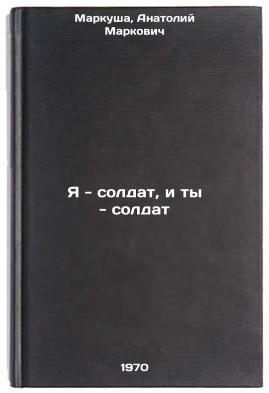 In Russian. Markusha, Anatoly Markovich. I am a soldier and you are a soldier. Moscow: Det. lit. 1970. All images are for identification of editions only. Several books of the same edition may be available. Please feel free to request photos of available books. SKU7354856
