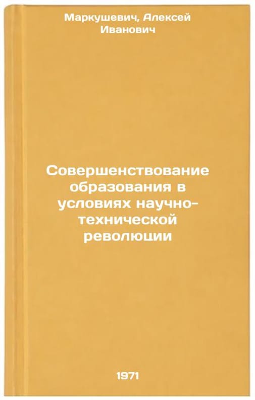 In Russian. Markushevich, Alexey Ivanovich. Improvement of Education in the Conditions of the Scientific and Technological Revolution. Moscow: 1971. Sovershenstvovanie obrazovaniya v usloviyakh nauchno-tekhnicheskoy revolyutsii. In Russian /Improving education in the context of the scientific and technological revolution . All images are for identification of editions only. Several books of the same edition may be available. Please feel free to request photos of available books. SKU7354859