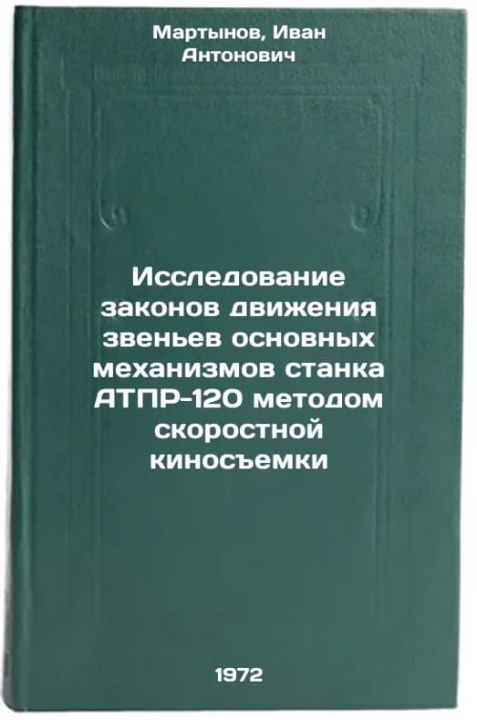 In Russian. Martynov, Ivan Antonovich. Investigation of the laws of motion of links of the main mechanisms of the ATPR-120 machine by the method of high-speed film shooting. Moscow: 1972. Issledovanie zakonov dvizheniya zvenev osnovnykh mekhanizmov stanka ATPR-120 metodom skorostnoy kinosemki. In Russian/Investigation of the laws of motion of links in the basic machinery of the ATPR-120 machine by means of high-speed film shooting. All images are for identification of editions only. Several books of the same edition may be available. Please feel free to request photos of available books. SKU7355920
