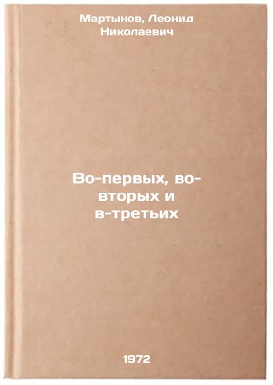 In Russian. Martynov, Leonid Nikolaevich. Firstly, secondly and thirdly. Moscow: Mologol Guards, 1972. All images are for identification of editions only. Several books of the same edition may be available. Please feel free to request photos of available books. SKU7355939