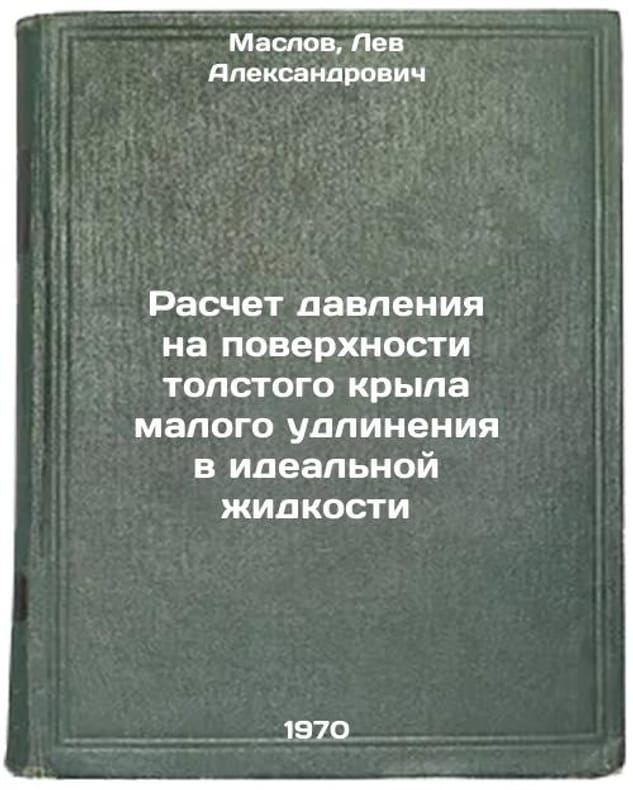 In Russian. Maslov, Lev Alexandrovich. Calculation of pressure on the surface of a thick wing of small elongation in an ideal liquid. Moscow: 1970. Raschet davleniya na poverkhnosti tolstogo kryla malogo udlineniya v ideal'noy zhidkosti. In Russian /Calculation of the pressure on the surface of the small wing in an ideal liquid . All images are for identification of editions only. Several books of the same edition may be available. Please feel free to request photos of available books. SKU7356325