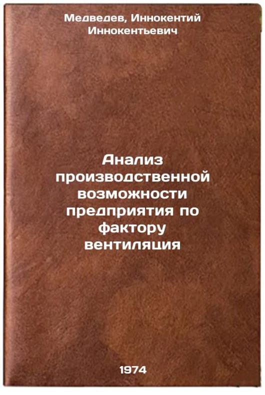 In Russian. Medvedev, Innokenty Innokentievich. Analysis of the production capacity of an enterprise by the factor of ventilation. Leningrad: LGI, 1974. Analiz proizvodstvennoy vozmozhnosti predpriyatiya po faktoru ventilyatsiya. In Russian /Ventilation analysis of plant capacity. All images are for identification of editions only. Several books of the same edition may be available. Please feel free to request photos of available books. SKU7359499