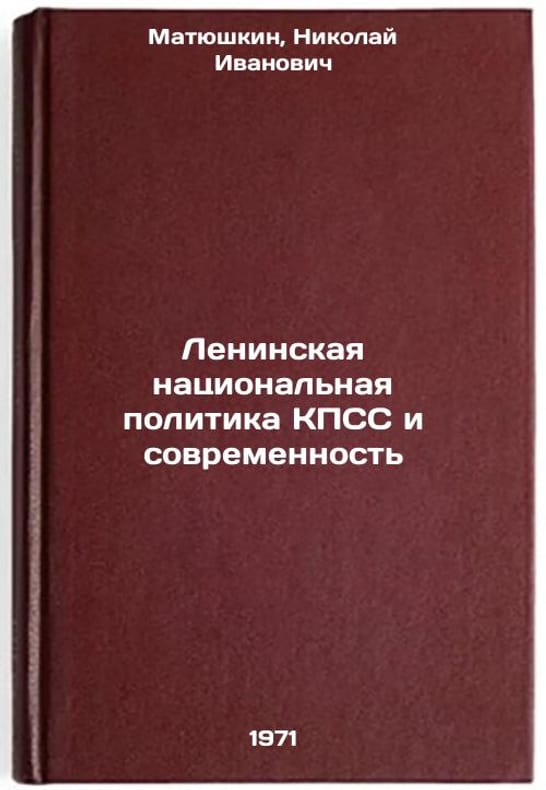 In Russian. Matyushkin, Nikolai Ivanovich. Lenin's National Policy of the CPSU and Modernity. Moscow: 1971. Leninskaya natsional'naya politika KPSS i sovremennost'. In Russian /Lenin's National Policy of the CPSU and Modernity . All images are for identification of editions only. Several books of the same edition may be available. Please feel free to request photos of available books. SKU7359924