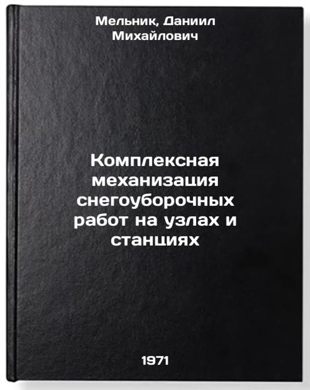 In Russian. Melnik, Daniil Mikhailovich. Complex mechanization of snow removal operations at nodes and stations. Moscow: Transport, 1971. Kompleksnaya mekhanizatsiya snegouborochnykh rabot na uzlakh i stantsiyakh. In Russian /Integrated mechanization of snow removal at assemblies and stations . All images are for identification of editions only. Several books of the same edition may be available. Please feel free to request photos of available books. SKU7361312