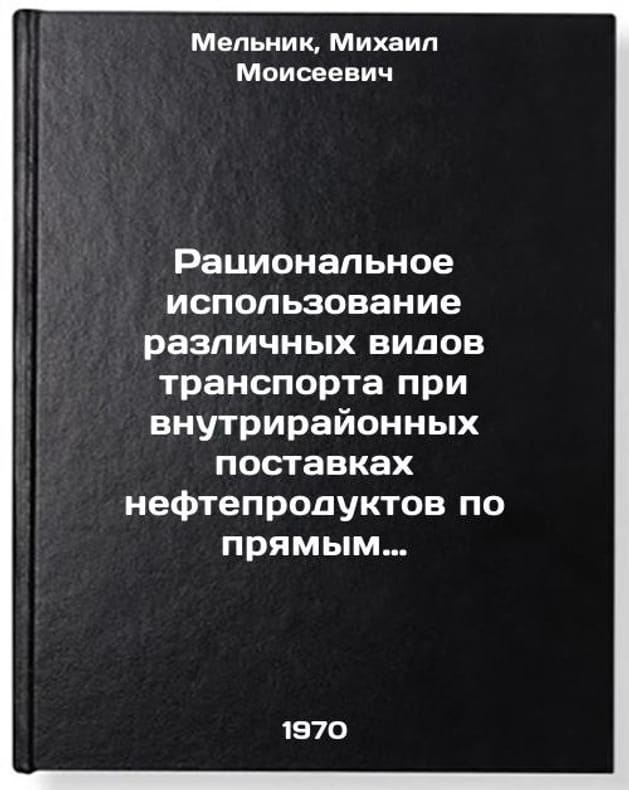 In Russian. Melnik, Mikhail Moiseevich. Rational use of different modes of transport in the intra-regional supply of petroleum products through direct links. Moscow: 1970. Ratsional'noe ispol'zovanie razlichnykh vidov transporta pri vnutrirayonnykh postavkakh nefteproduktov po pryamym svyazyam. In Russian /Rational use of different modes of transport in the intra-district direct supply of petroleum products . All images are for identification of editions only. Several books of the same edition may be available. Please feel free to request photos of available books. SKU7361337