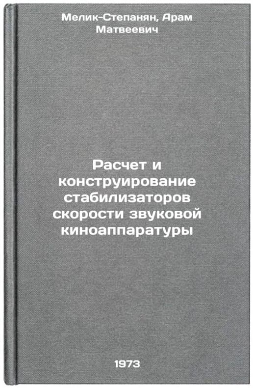 In Russian. Melik-Stepanyan, Aram Matveevich. Calculation and design of speed stabilizers for sound film equipment. Leningrad: LIKI, 1973. Raschet i konstruirovanie stabilizatorov skorosti zvukovoy kinoapparatury. In Russian/Calculation and design of speed stabilizers for acoustic film equipment. All images are for identification of editions only. Several books of the same edition may be available. Please feel free to request photos of available books. SKU7361870