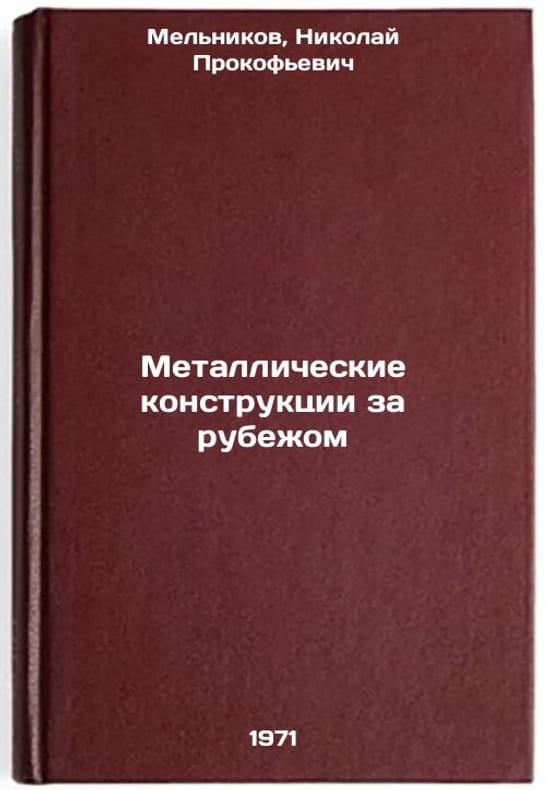 In Russian. Melnikov, Nikolai Prokofievich. Metal constructions abroad. Moscow: Stroyizdat, 1971. All images are for identification of editions only. Several books of the same edition may be available. Please feel free to request photos of available books. SKU7362077