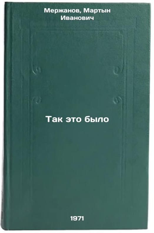 In Russian. Merzhanov, Martyn Ivanovich. That was it. Moscow: Politizdat, 1971. All images are for identification of editions only. Several books of the same edition may be available. Please feel free to request photos of available books. SKU7362323