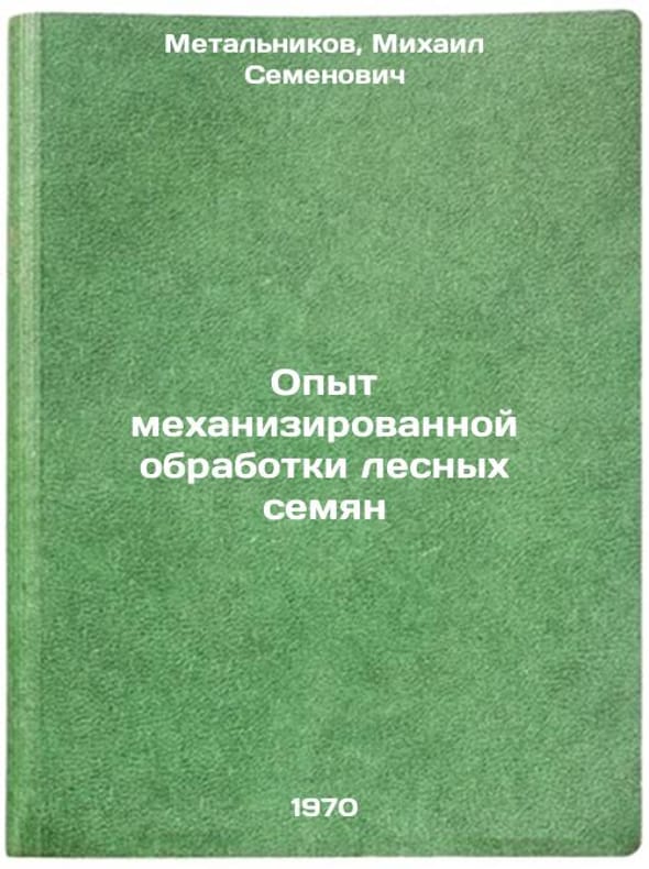 In Russian. Metalnikov, Mikhail Semenovich. Experience of mechanized forest seed processing. Moscow: Forest Industry, 1970. Opyt mekhanizirovannoy obrabotki lesnykh semyan. In Russian /Experience with mechanized forest seed processing . All images are for identification of editions only. Several books of the same edition may be available. Please feel free to request photos of available books. SKU7362867