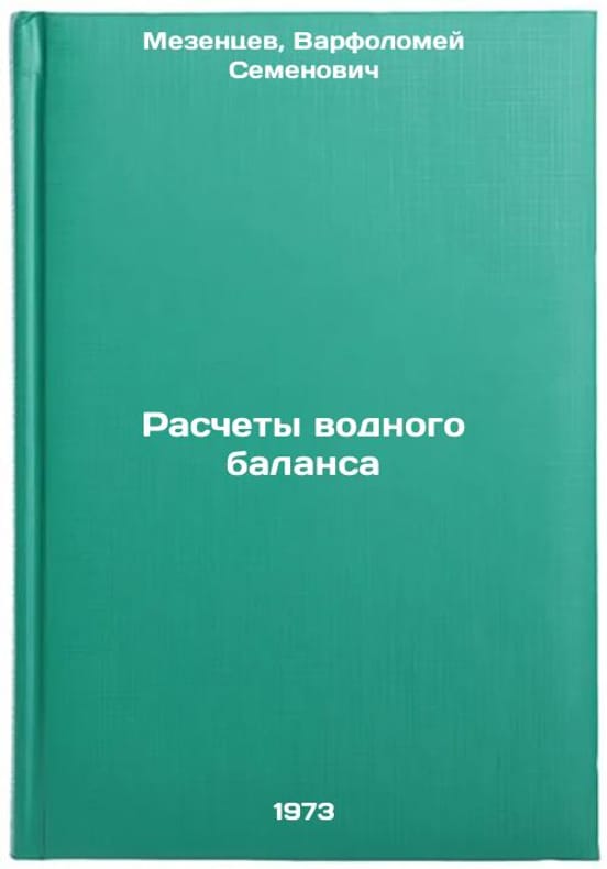 In Russian. Mezentsev, Bartholomew Semyonovich. Water balance calculations. Omsk: 1973. All images are for identification of editions only. Several books of the same edition may be available. Please feel free to request photos of available books. SKU7363556