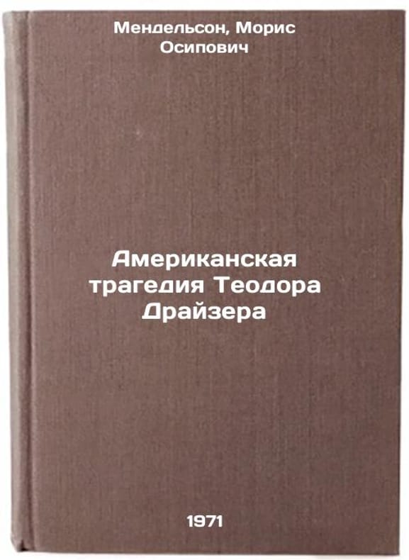 In Russian. Mendelsohn, Maurice Osipovich. Theodore Dreiser's American Tragedy. Moscow: Art Lite., 1971. Amerikanskaya tragediya Teodora Drayzera. In Russian /Theodore Dreiser's American Tragedy . All images are for identification of editions only. Several books of the same edition may be available. Please feel free to request photos of available books. SKU7364192