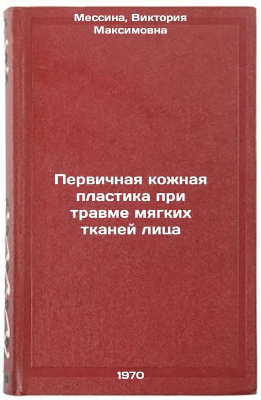 In Russian. Messina, Victoria Maksimovna. Primary dermal plasty for trauma to the soft tissues of the face. Moscow: Medicine, 1970. Pervichnaya kozhnaya plastika pri travme myagkikh tkaney litsa. In Russian /Primary Skin Plastic Facial Soft Tissue Injury . All images are for identification of editions only. Several books of the same edition may be available. Please feel free to request photos of available books. SKU7364271