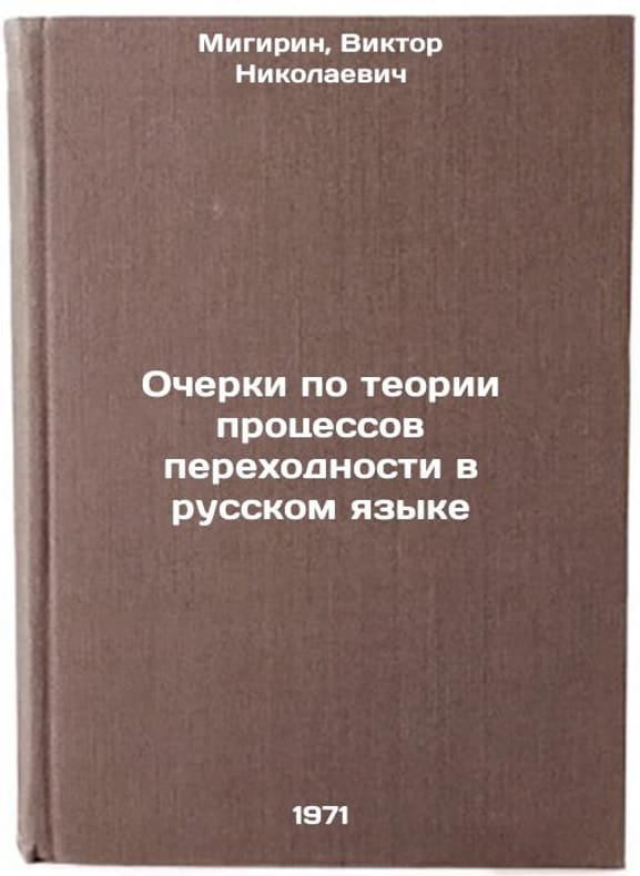 In Russian. Migirin, Viktor Nikolaevich. Essays on the Theory of Transition Processes in Russian Language. Balti: b. i., 1971. Ocherki po teorii protsessov perekhodnosti v russkom yazyke. In Russian /Essays on the Theory of Transition Processes in Russian . All images are for identification of editions only. Several books of the same edition may be available. Please feel free to request photos of available books. SKU7369896