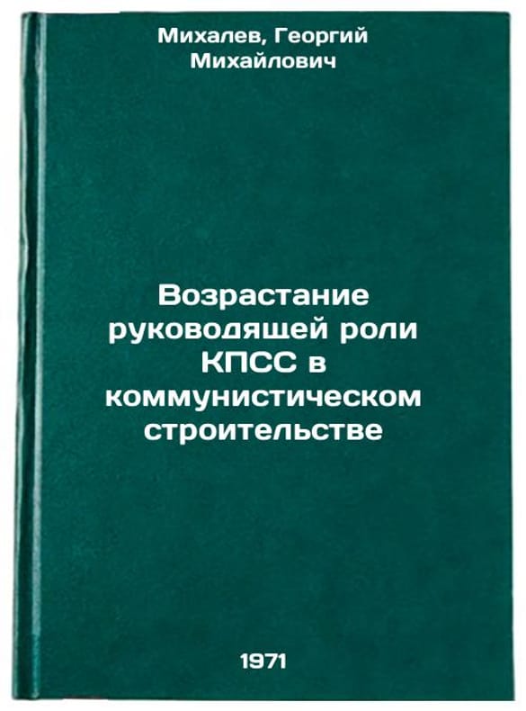 "Short description: In Russian. Mikhalev, Georgy Mikhailovich. The Rising Leadership Role of the CPSU in Communist Construction. Vozrastanie rukovodyashchey roli KPSS v kommunisticheskom stroitel'stve. In Russian /The Rising Leadership Role of the CPSU in Communist Construction . All images are for identification of editions only. Several books of the same edition may be available. Please feel free to request photos of available books. SKU7371809"