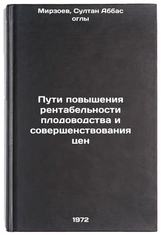 In Russian. Mirzoev, Sultan Abbas ogly. Ways to increase the profitability of fruit production and improve prices. Baku: 1972. Puti povysheniya rentabelnosti plodovodstva i sovershenstvovaniya tsen. In Russian/Ways to increase the profitability of fruit production and improve prices. All images are for identification of editions only. Several books of the same edition may be available. Please feel free to request photos of available books. SKU7372676