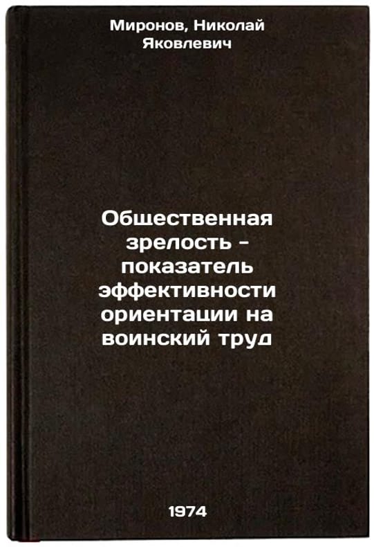 In Russian. Mironov, Nikolai Yakovlevich. Social maturity - an indicator of the effectiveness of orientation to military labor. Leningrad: 1974. Obshchestvennaya zrelost' - pokazatel' effektivnosti orientatsii na voinskiy trud. In Russian /Social Maturity - An Indicator of the Effectiveness of Military Orientation. All images are for identification of editions only. Several books of the same edition may be available. Please feel free to request photos of available books. SKU7372925