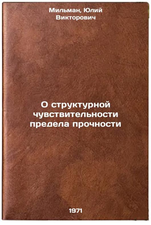 In Russian. Milman, Yuliy Viktorovich. On structural sensitivity of the strength limit. Kyiv: 1971. O strukturnoy chuvstvitel'nosti predela prochnosti. In Russian /Structural sensitivity of the strength limit . All images are for identification of editions only. Several books of the same edition may be available. Please feel free to request photos of available books. SKU7373195