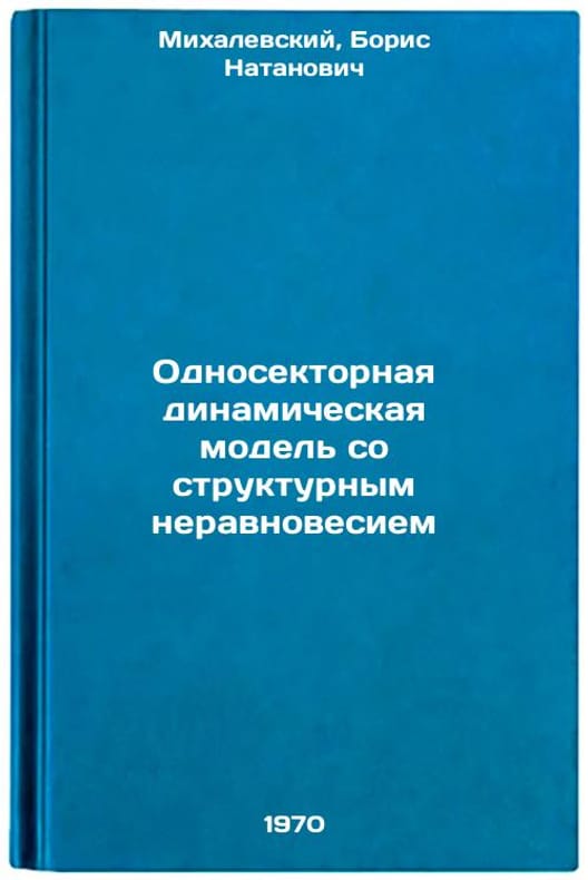 "In Russian. Mikhalevsky, Boris Natanovich. Single-sector dynamic model with structural imbalance. Moscow; Novosibirsk: 1970. Odnosektornaya dinamicheskaya model' so strukturnym neravnovesiem. In Russian /Single-sector dynamic model with structural imbalances . All images are for identification of editions only. Several books of the same edition may be available. Please feel free to request photos of available books. SKU7373374"