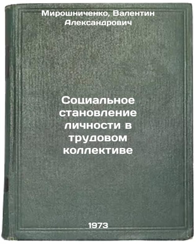 In Russian. Miroshnichenko, Valentin Aleksandrovich. Social formation of personality in the labor collective. Omsk: Zap.Sib. Publishing House, 1973. Sotsialnoe stanovlenie lichnosti v trudovom kollektive. In Russian/Social development of the individual in the workforce. All images are for identification of editions only. Several books of the same edition may be available. Please feel free to request photos of available books. SKU7373564