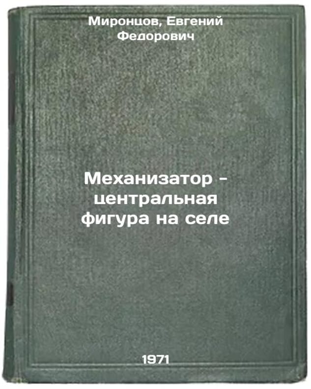 In Russian. Mirontsov, Evgeniy Fedorovich. The mechaniser is a central figure in the countryside. Minsk: Uradzhai, 1971. Mekhanizator - tsentral'naya figura na sele. In Russian /The mechaniser is the central figure in the countryside . All images are for identification of editions only. Several books of the same edition may be available. Please feel free to request photos of available books. SKU7373779